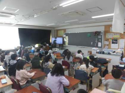 今日の児童朝会では、12月、1年のまとめに行われる「新語・流行語大賞」や「今年の漢字」のお話がありました。今年の「新語・流行語大賞」は、大谷翔平選手の大活躍を表す「リアル二刀流・ショータイム」でした。去年は、新型コロナウイルス感染症の流行のため「3密」でした。去年の「今年の漢字」は「密」でした。早くコロナ関連の言葉が上位にならない年になってほしいと思います。
