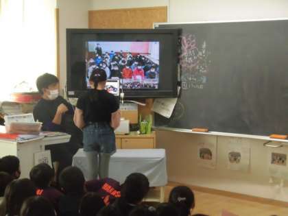 5年生が、Zoomを使って山崎小学校、舟形小学校の5年生と交流を行いました。7月以来の顔を合わせての交流でした。先日、それぞれ学校で作成した学校紹介ビデオを見ての質問をそれぞれでして、それに答えました。代沢小の代表の子も、しっかりと質問したり、質問に答えたりしました。楽しい時間を過ごした3校の子どもたち、みんなとても元気でした。舟形は、まだ、雪は積もっていないそうです。