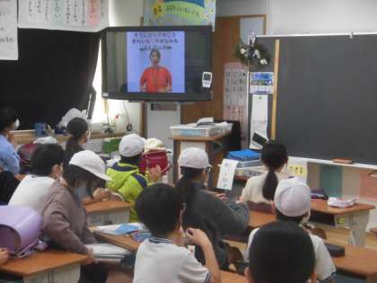 2学期最後の音楽朝会もテレビ放送で行いました、「ウインター・ワンダーランド」は、英語の歌詞も上手に歌っていました。「校歌」も久しぶりに3番まで歌いました。