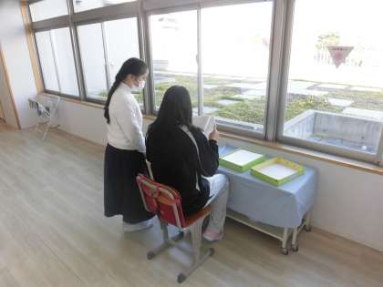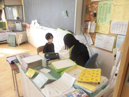 2学期の通知表を担任の先生から、いただいています。頑張ったことや、アドバイスなど一言いただきながらもらっています。お家に帰ったら、家の人に報告してくださいね。