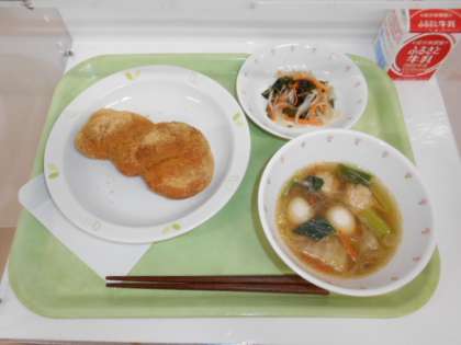 きなこあげパン 牛乳 肉だんご入り春雨スープ