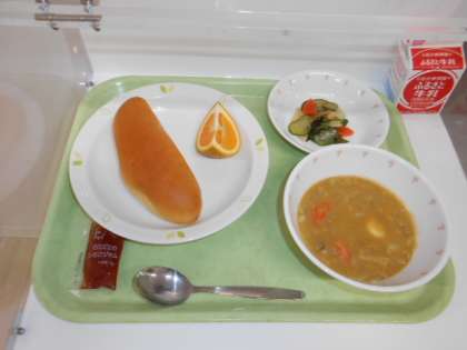 コッペパン・いちごジャム 牛乳 カレーシチュー