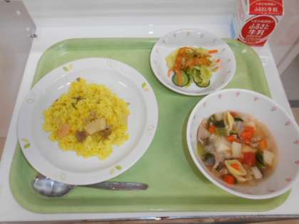 パエリア 牛乳 ミネストローネ パリパリサラダ