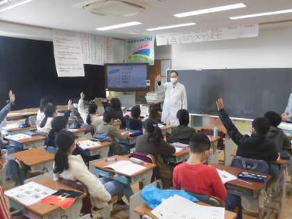ヒラメの養殖に挑戦している5年生。今日は、各クラス2時間ずつ、講師の先生の授業を受けました。社会科の水産業でも学習した魚を育てる養殖や栽培漁業について、それぞれの違いや良い点、悪い点など詳しく教えていただきました。最後には、これからの魚を育てる漁業のあり方などについて自分の考えをまとめました。講師の先生には、感染予防のため、クラスごとに授業をしていただきました。1日、ありがとうございました。