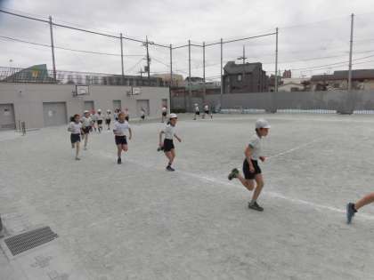 今週は、各学級ごとに持久走記録会を行っています。走る方と記録を確認する2組に別れての実施です。これまでの練習の成果を発揮して頑張って走っています。
