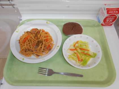 スパゲティナポリタン 牛乳 キャベツサラダ おからマフィン