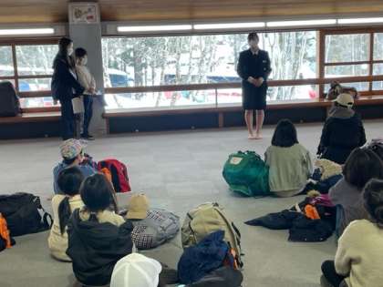 村の会堂で閉室式をしています。一泊ニ日の短い間でしたが、様々な人にお世話になりました。みんなで感謝の気持ちをもって、東京まで安全に帰りましょう。ありがとうございました。