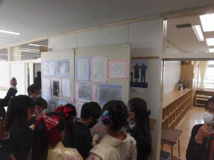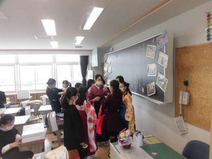 とても良い天気の中、卒業式を迎えました。いつもよりおしゃれをした子どもたちが学校に登校してきました。教室でおしゃべりに花を咲かせたり、廊下に掲示してある祝電を読んだりしながら開式をまっています。