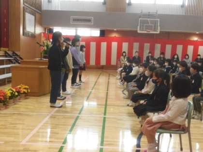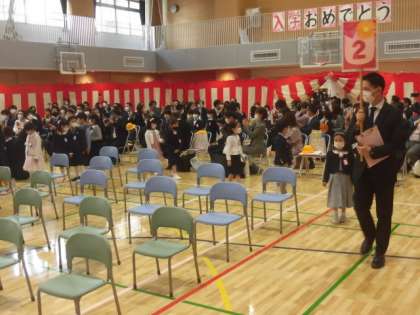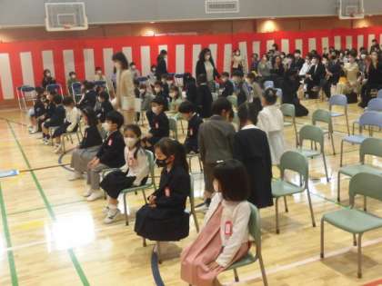 1組、2組の入学式の様子です。担任の先生とも「よろしくお願いします」のあいさつが元気にできました。在校生代表の6年生のお話もしっかりと聞いていて立派です。