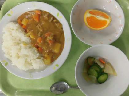 カレーライス 牛乳 シャキシャキ野菜 くだもの