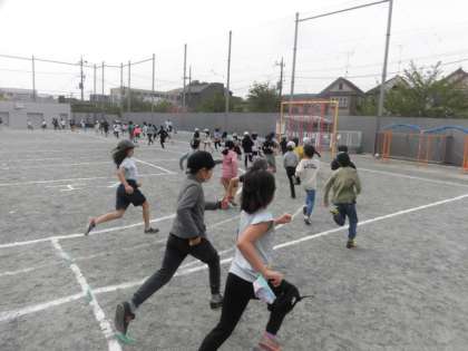 今日のランランタイムは、3年生。ラジオ体操も走る姿も、2年生より力強くなったようです。最後までしっかりと走り切りました。