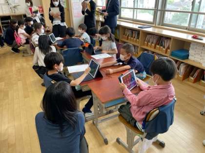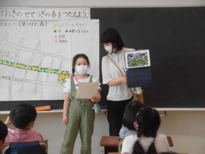 今年度最初の校内研究授業を行いします。今年度から研究主題を「社会とつながり未来を創る子供の育成」として生活科・社会科の研究を進めていきます。今日は、2年3組で「せせらぎたんけん 春みつけ」の授業をしました。22日の金曜日に行って見つけてきたせせらぎ緑道の「とっておきの春」を紹介し合いました。ipadで撮った写真も上手に使って友達に伝えていました。1年3組の時の校内研を見ていただいた講師の先生からも子どもたちの発表の様子をほめていただきました。