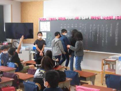 5月の委員会がありました。5年生も委員会を初めて一か月。一か月を振り返って反省をしたり、これからの活動の確認をしたりしていました。5・6年生で協力して話し合いをしていました。