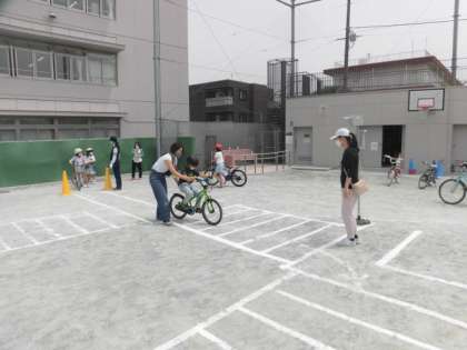 3年生は、3校時に自転車の正しい乗り方を教えてもらって、実際に校庭で自転車に乗りました。自分の自転車でないものに乗った子もいましたが、みんな真剣に自転車に乗っていました。これから自転車に乗る機会も増えていくと思います。自転車に乗って事故にあったり、事故を起こしたりしないようにルールを守って、無理のないように乗りましょう。自転車を学校まで持ってきてくれたり、子どもたちが自転車に乗るのを手伝ってくださったりした保護者の皆様ありがとうございました。北沢警察の皆さん、1年生、3年生のご指導ありがとうございました。