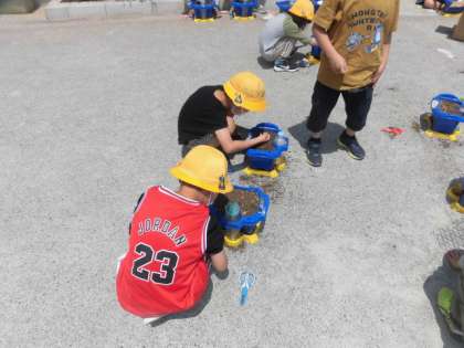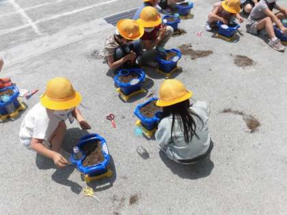 1年生がアサガオの種まきをしました。小さな種を無くさないように気を付けて自分の鉢にまきました。お世話をしっかりといしていきましょう。