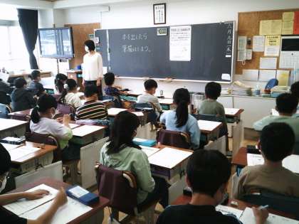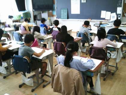 4・5・6年生が世田谷区の学習習得確認調査を受けました。1時間目から4時間目まで、国語・算数・社会・理科の前学年の問題に挑戦です。みんな真剣の問題を解いていました。