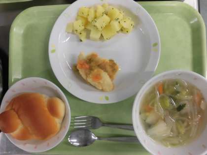 ミルクパン 牛乳 魚のエスカベージュ 粉ふきいも ベーコンと白菜のスープ