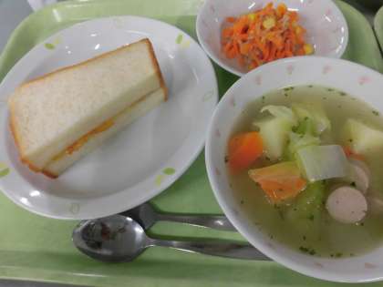 ジャムサンド 牛乳 ポトフ にんじんサラダ