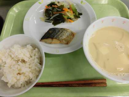 そして、今日のみそ汁は、とても色白なみそ汁です。さて何が入っているのでしょうか。