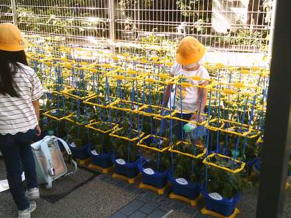ここのところの暑さで、ちょっとぐったりしていたアサガオですが、1年生が水やりのお世話を続けたので、花が咲き始めました。登校した時に花が咲いているのを見つけて、嬉しそうに報告してくれました。これから、どんどん花が咲いてきます。楽しみにこれからも水やりがんばりましょう。
