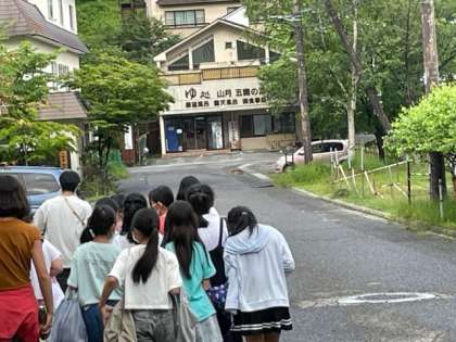 入浴が始まりました。男子は、本館。女子は分館に入ります。お湯は、源泉掛け流しです。