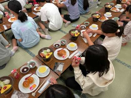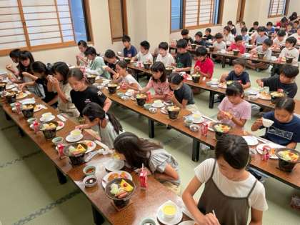 宿舎で最後の食事です。美味しい食事をありがとうございました。感謝の気持ちを込めて、美味しくいただきましょう。いただきます。
