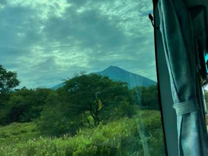 ガイドさんから、戦場ヶ原の伝説などの話を聞きながら日光江戸村を目指しています。帰りは、第一いろは坂を下さっていきます。