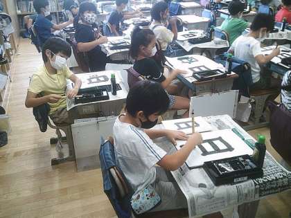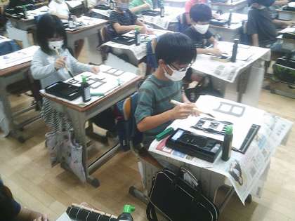 3年生の習字の授業の様子です。みんな真剣に取り組んでいて、筆の使い方もだんだん上手になってきています。