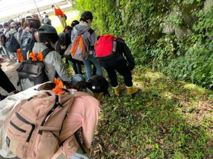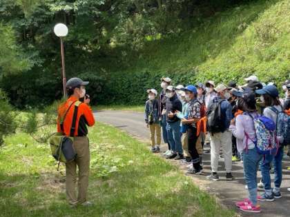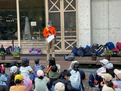 説明を聞きながら、ふじやまビレジの周りを歩いています。自分たちの住む世田谷区とは、様子が違います。