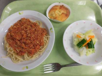 ミートスパゲッティ 牛乳 ピクルス パイナップルケーキ