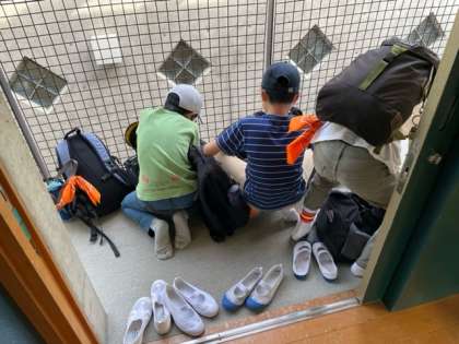 最後の片付けです。次の学校のことを考えてきれいにしましょう。