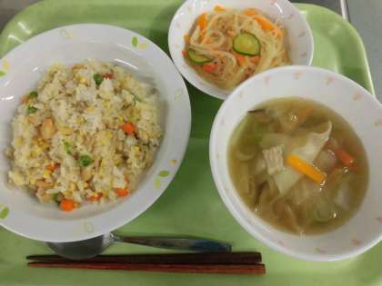 チャーハン 牛乳 春雨サラダ ワンタンスープ