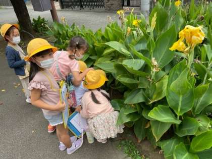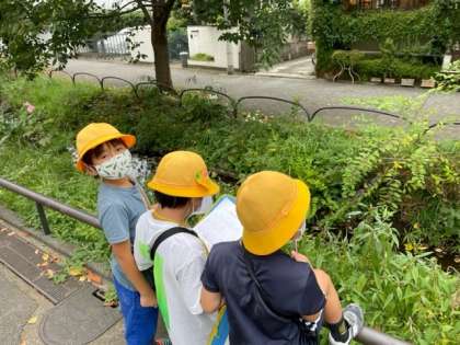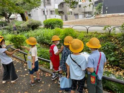 1年生がせせらぎ緑道の探検に出かけました。7月に行った時と同じところ、違うところ色々見つけたようです。
