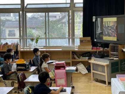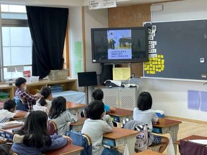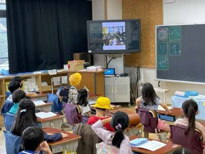 今日は、テレビ放送による音楽朝会でした。「音楽クラブ」の演奏の鑑賞と9月の歌「少年時代」を歌いました。「少年時代」の伴奏は、3年の横田先生のギターと安藤先生のピアノの演奏でした。3年1組の教室からは歌った後、「先生、いつ撮ったの?」という声が聞かれました。