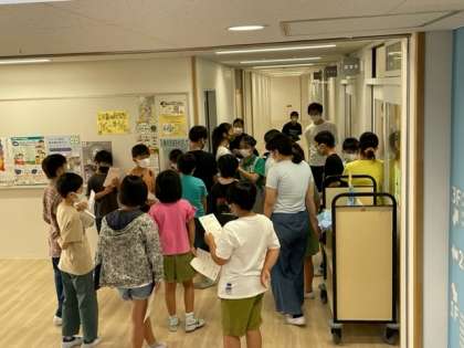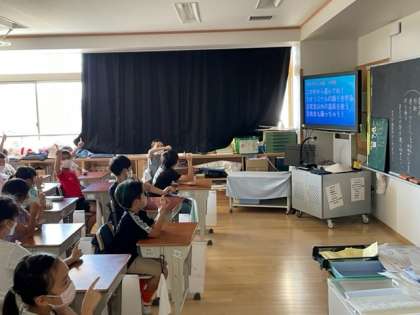 前期集会委員会の最後の児童集会がありました。今日はテレビ放送で、今週末に行われる「表現発表会」の各学年の演技にちなんだクイズが出されました。自分の学年以外の演技にも興味がもてる内容でした。表現発表会がますます楽しみになりました。