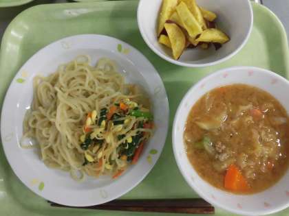 ぶたにく(茨城) 粉かつお(静岡) にんにく(青森) しょうが(高知) にんじん(北海道) きゃべつ(群馬) ねぎ(青森) さつまいも(千葉) 豆もやし(群馬) とうもろこし(北海道) 小松菜(東京)