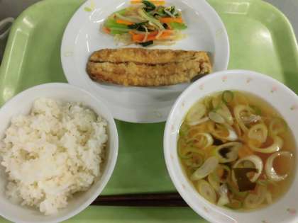 麦ごはん 牛乳 魚のかばやき風 野菜のおかかかけ すまし汁