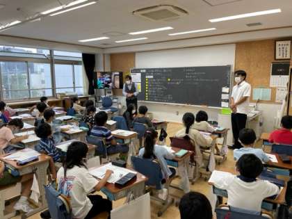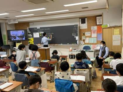 「信濃屋」さんにたくさんのお客さんが来ている理由を調べてきた3年生。今日は、見学でもお世話になったお店の人にきていただき、みんなが考えた工夫について聞いてもらってお話をしていただきました。自分たちで考えた工夫以外にも新しい発見もあったようです。
