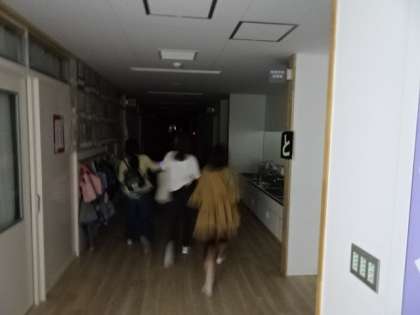 花火の後は、夜の学校探検です。どんどん暗くなってきた中、チームで夜の学校を回って7つの文字を探して文を完成させます。途中、PTAや親児の会の方が脅かしや案内をしてくれていました。いつもと違う校舎を楽しんでいました。