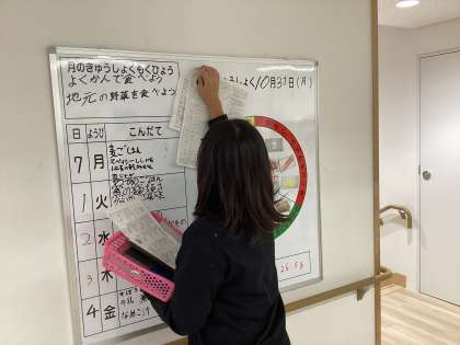 昼休みには給食委員会の児童が、栄養表の表示を変えていました。食や栄養に興味を持ってくれるといいですね。