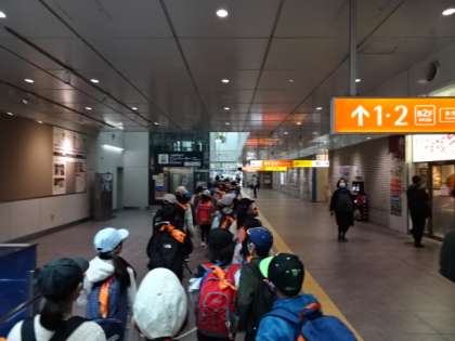 4年生が、多摩動物公園に電車に乗って遠足に行きました。楽しみにしていた遠足です。下北沢駅まで安全に気を付けて歩いて、小田急線に乗りました。