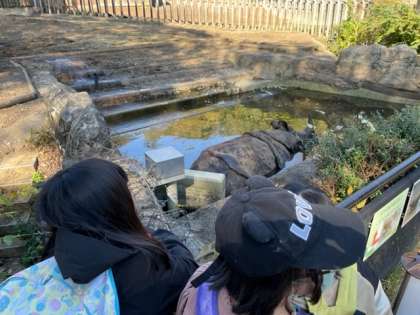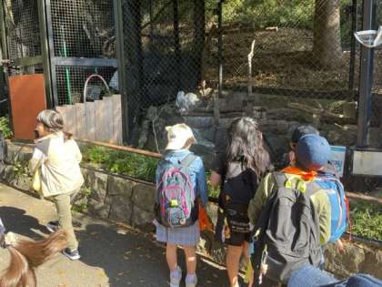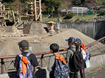写真を撮った後は、グループごとに見学です。地図と時計を見ながらオーストラリア園とアジア園を回っています。珍し移動靴にくぎ付けになっています。