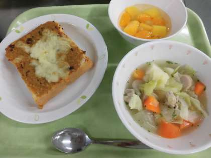 ドライカレーサンド 牛乳 ポトフ フルーツポンチ