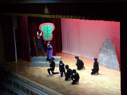 今日の子どもたちの演技の様子です。最初は、元気な元気な3年生の元気な元気な「そんごくう」です。