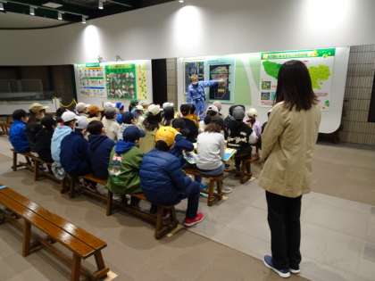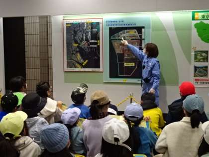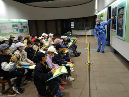 中央防波堤埋立処分場の見学です。1・2組は最初にごみ処理の大切さについての説明を聞いています。3組は、バスで埋立処分場を見学しました。