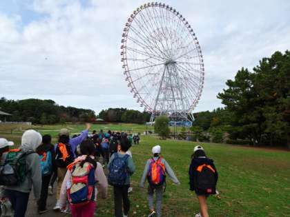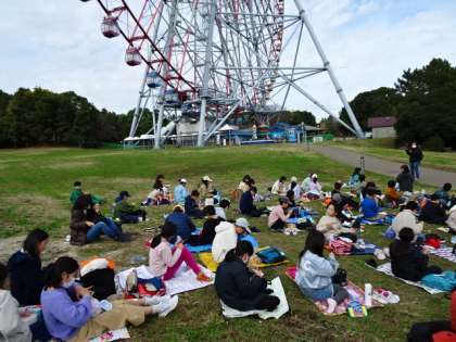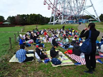 葛西臨海公園の大観覧車の下の芝生広場でお弁当を食べています。いつもより早い昼食でしたが、「お腹が空いた」と言って、みんな美味しそうに食べていました。お弁当の準備、ありがとうございました。