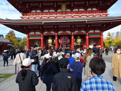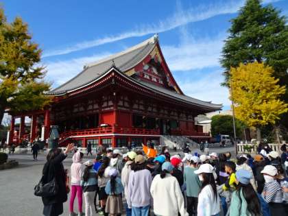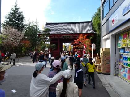 浅草寺に到着です。言問通りでバスを降りて、二天門から中に入りました。大きな本堂にびっくりです。