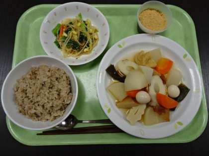 こめ(秋田) うずらたまご(愛知) にんじん(千葉) だいこん(大蔵大根 東京せたがやそだち) ほうじ茶(東京) きなこ(国内) 豆もやし(群馬) こまつな(東京)