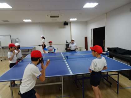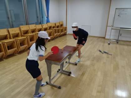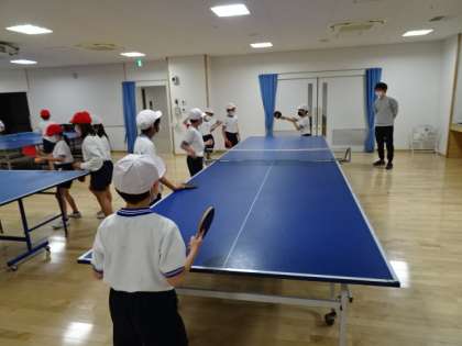 2学期最後の卓球クラブの様子です。いつもの卓球台とは様子が少し違っています。工夫して取り組んでいてとても楽しそうです。