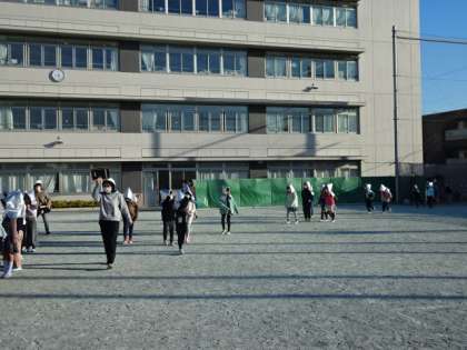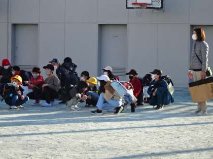 3学期最初の避難訓練は、地震を想定した避難訓練でした。8時20分からの開始だってので、まだ校舎に入っていない子もいました。地震は、いつ起こるか分かりません。登下校の途中で起きたとき、どう行動すればよいか、しっかりと決めておきましょう。
